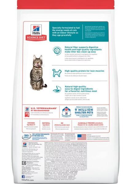 Hill's Science Diet Indoor Adult 7+ dry cat food is specially formulated to fuel the energy needs of cats with an indoor lifestyle as they age gracefully.