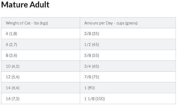 - An eight fluid oz. measuring cup of Adult 7+ Indoor Chicken Recipe Cat Food contains 3.1 grams by weight.