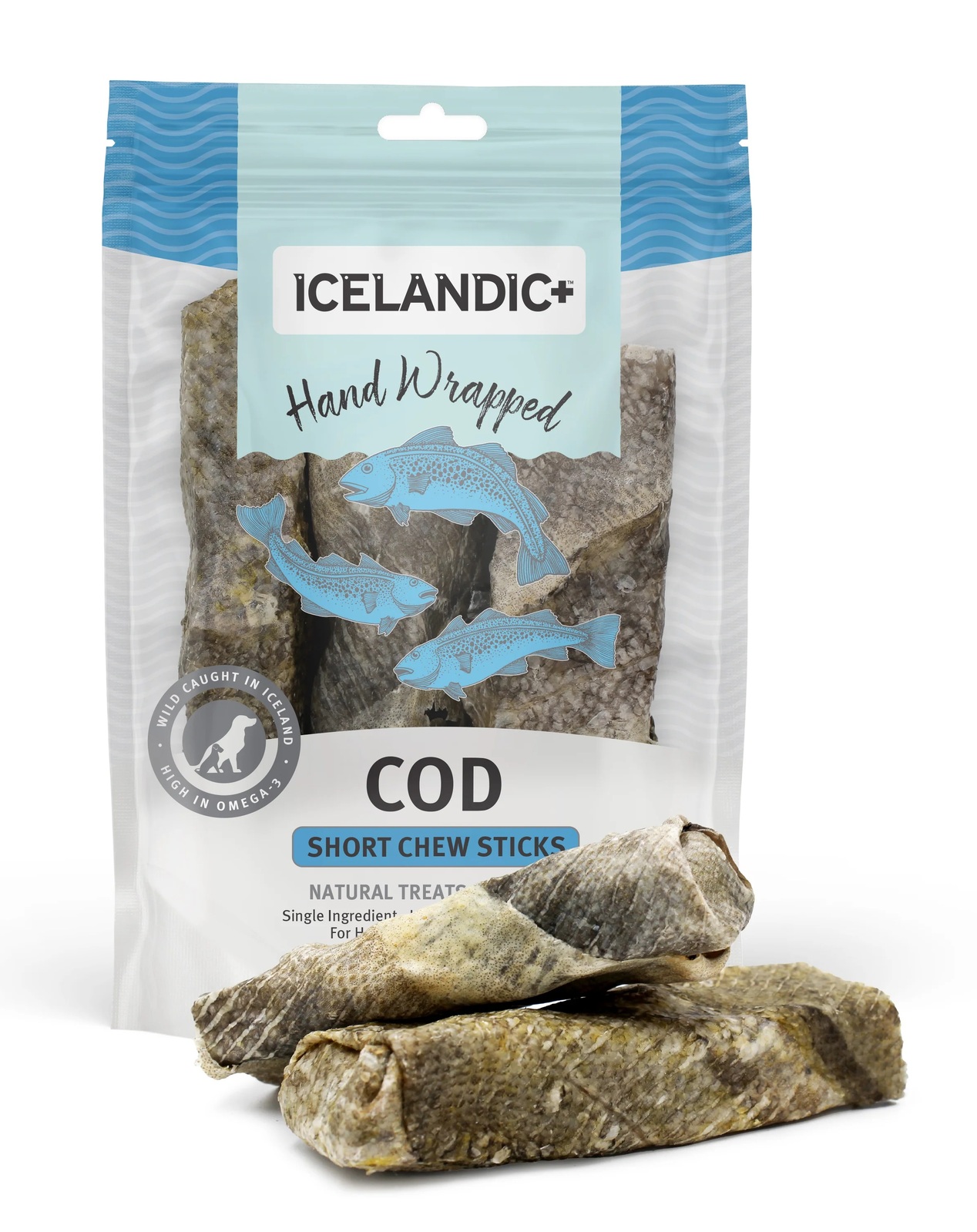 100% Pure Icelandic+™ Hand Wrapped Cod Skin Short Chew Sticks