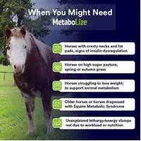 Horses with mild symptoms will be able to process their normal diet better, while those with severe symptoms will find MetaboLize® a game changer for restoring their quality of life.